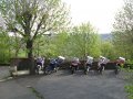 Bruno und ich sind die ersten. Nach dem zweiten Schluck Kaffe klingelt das Handy, Andi Lenher „du i bi z Gruyere wo muesi düre?“ Er wahr nicht der einzige der mühe hatte mit dem Treffpunkt. Harry und Bebbi drehten eine runde über Yverdon. Pünktlich mit einer Stunde verspätung starteten wir richtung Frankreich. Vallé de Jou St. Cloude hinter uns giengs auf die Autobahn, mit einer Ehrenrunde treffen wir im Hotel in Pay en Velay ein. Zimmerbezug und ab ins Apéro Das erste Bier im Schatten, der Kälte entschieden wir kurzerhand den Rasen an der Sonne zu entern, wos von der Temperatur her erträglicher wahr. Die Küche ist nun auch bereit und voller Freude setzten wir uns an den Tisch. Dann das grosse Staunen! Die Karte offenbart eine Überraschung, wir sind in einem nobel Restaurant gelandet. Dank fachkundiger Übersetzung von Andi Seiler findet dann doch jeder und vorallem jede etwas nach seinem Geschmack. Nach dem tollen Käsebuffet noch einen Kaffe und der Abend ist gerettet. Freitagmorgen, Besprechung der Tages Tour. Meine geplante Tour von knapp 400 km zum Viadukt de Millau stellt sich als zu stressig heraus. Navi sei dank wird kurzerhand die Gegend erkundet. Auf kleinen aber feinen Strässchen kurven wir durchs Land, frei nach dem Motto alles der Nase nach(oder halt dem Navi) Mittagessen an einem kleinen Stausee, Kaffeepause in der Gartenbeiz, den ganzen Tag Sonnenschein und abwechslungsreiche Strecken Motorradherz was willst Du mehr? Nachdem wir die Nachricht von Ullis Sturz und daraus folgendem Schlüsselbeinbruch verdaut hatten, entscheiden wir uns dann zum Fussmarsch ins Städtchen. Dank der genialen Idee dem Wegweiser Centre Ville zu folgen kommen wir nicht nur beim niedlichen Rottweiler vorbei (Andi Lehnherr weis mehr) sondern machen auch noch einen riesen Umweg. Die Rückkehr ins Hotel erweist sich dann als echte Herausforderung, gegen Mitternacht nach 2 oder waren es 3 Bier, 3 oder doch 4 Km bergauf?!?